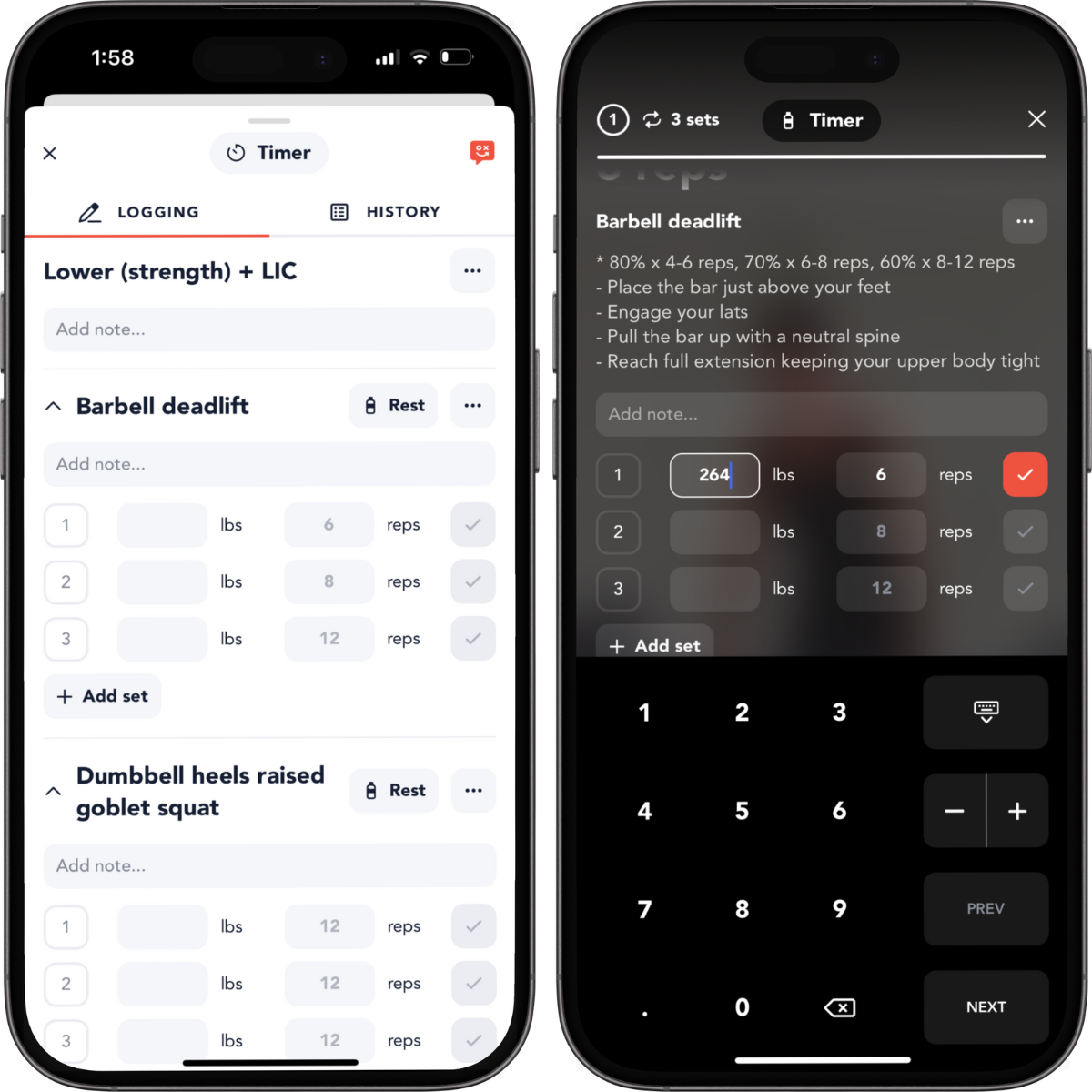 Input your weights and reps and also add notes.